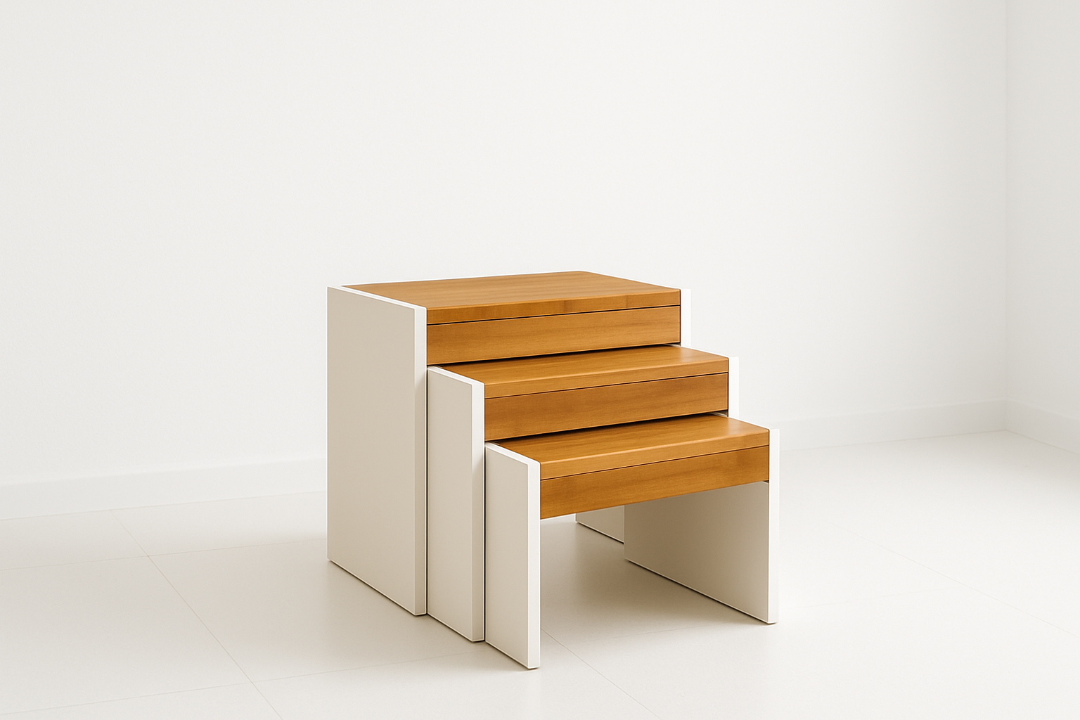 Add a touch of elegance to your living room with our overlapping side table. Sleek and practical, it’s the perfect space-saving solution. Available in a range of finishes to complement any decor.