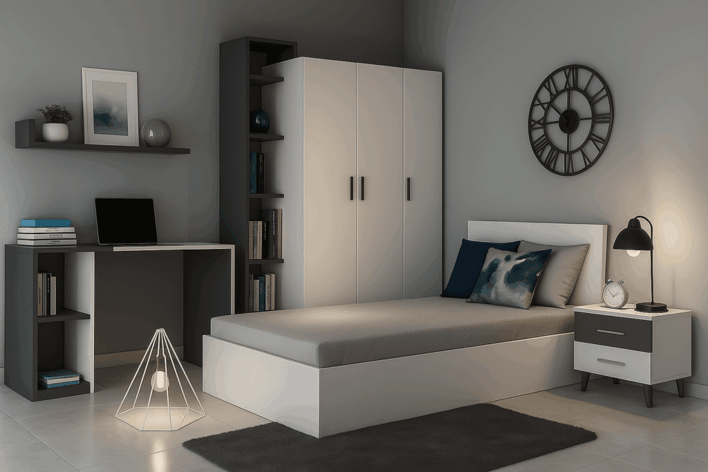 A stylish room that adapts as they grow; featuring versatile pieces, modern finishes, and a layout that supports both rest and productivity. Enjoy peace of mind with our replace-not-repair service and a 3-year warranty against manufacturing defects.