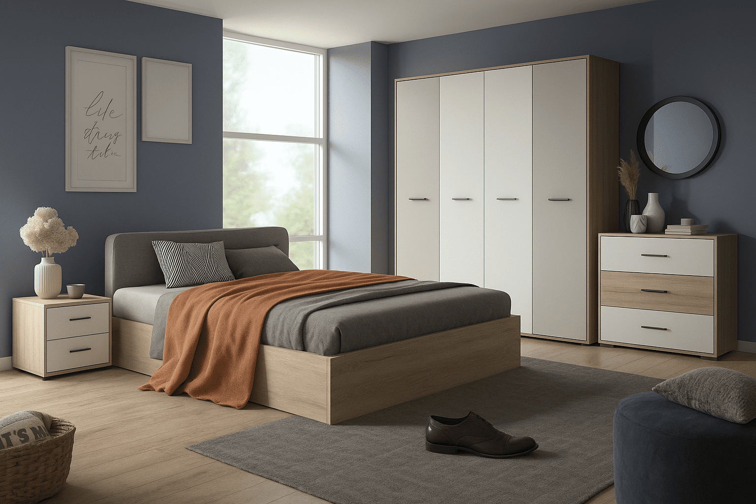 High-quality Novero master bedroom set is made from high-quality manufactured wood, the set consists of: